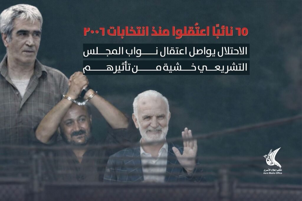 منذ انتخابات عام 2006، اعتقل الاحتلال أكثر من 65 نائبًا، تعرض بعضهم للاعتقال المتكرر، وأمضوا سنوات طويلة في السجون، خاصة تحت سياسة الاعتقال الإداري دون تهم.